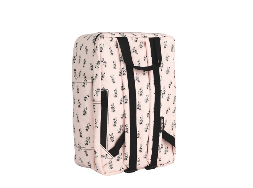 Mochila Mooving Minnie Mouse Pink, con diseño moderno y femenino inspirado en el estilo clásico de Minnie. Ideal para el uso diario, combinando practicidad y estilo.